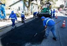 Rua no bairro Bucarein, em Joinville, passa por obra de recapeamento asfáltico
