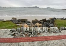 Ressaca danifica trecho do novo calçadão da Orla da Enseada, em São Francisco do...
