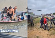 Resgate aéreo retira pescadores presos em barco no mangue de Joinville