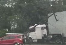 Caminhão carregado de ureia tomba em rodovia de São Francisco do Sul