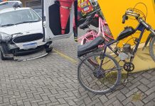 Duas pessoas vão para o hospital após colisão entre bicicleta motorizada e carro em...